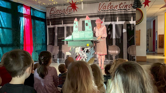 Vor einem Jahr saßen wir mit Klein und Groß wenige Tage vor Weihnachten im Theater „Eiscafé Valentino“ und schauten zu, wie ein kleiner Ritter sich seiner Angst stellte. Es ist nämlich nun schon schöne Tradition in unserem Haus geworden, dass die Kinder unserer Kita am Tag ihrer Weihnachtsfeier in ein „hauseigenes“ Theater gehen. Wir feiern dieses besondere Fest mit einem gemeinsamen Erlebnis.