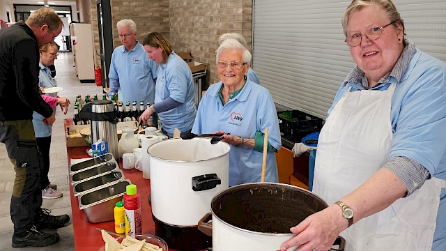 Nach getaner Arbeit treffen wir uns in der Mensa der Alfried-Otto-Schule. Dort geben Walter Peters und sein Team der AWO Dassendorf einen kleinen Imbiss und Getränke für alle fleißigen Sammelnden aus. So findet in gemütlicher Runde das gemeinsame Tun einen geselligen Abschluss.